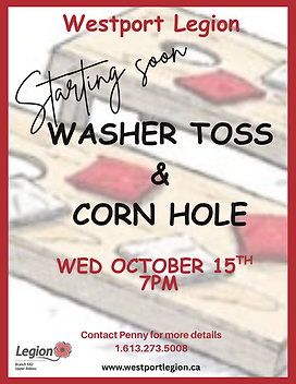Upper Rideau Lakes Branch 542 Westport has very active Sport teams. From Washer Toss, Corn Hole, Darts, BINGO, to Euchre, and Cribbage. We have something for everyone and everyone is Welcome !